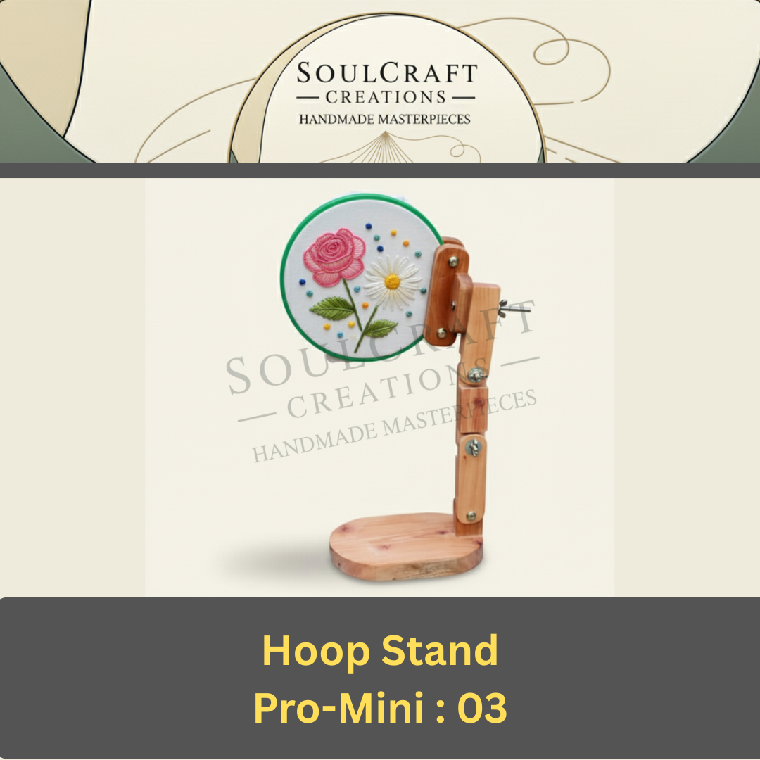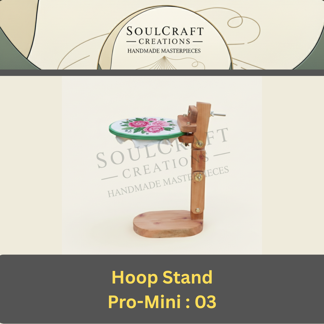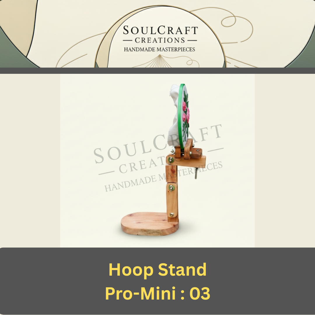 প্রতিটি সেলাইয়ের জন্য পরিমার্জিত পারফরম্যান্স! সৌলক্রাফট হুপস্ট্যান্ড প্রো-মিনি ভার্সন ০৩ সেইসব কারিগরদের জন্য ডিজাইন করা হয়েছে যারা একটি নিরবচ্ছিন্ন কাজের ধারা পছন্দ করেন। ১২ ইঞ্চি অ্যাডজাস্টেবল উচ্চতা বজায় রেখে এই মডেলটি এমব্রয়ডারি, ক্রস-স্টিচ বা পাঞ্চ নিডেল প্রজেক্টের জন্য একটি স্থিতিশীল এবং আরামদায়ক কেন্দ্রবিন্দু তৈরি করে। এটি একটি ‘কমপ্যাক্ট পাওয়ারহাউস’ যা যেকোনো সমতল পৃষ্ঠকে পেশাদার স্টুডিও স্পেসে পরিণত করতে পারে।